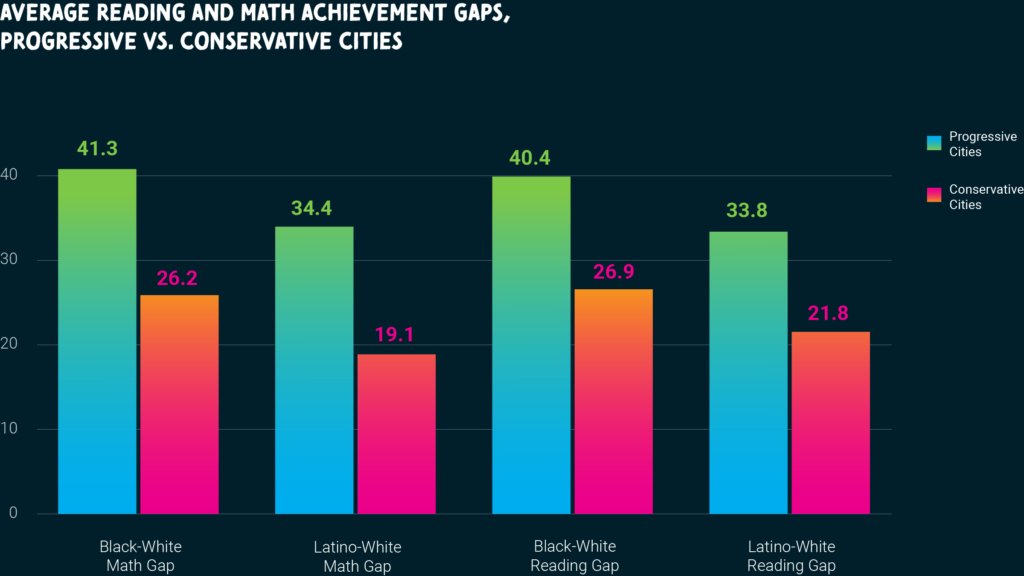 Leaders of progressive cities often frame their policy proposals in terms of what’s best for those with the least opportunity and the greatest obstacles. And yet, students in America’s most progressive cities face greater racial inequity in achievement and graduation rates than students living in the nation’s most conservative cities.