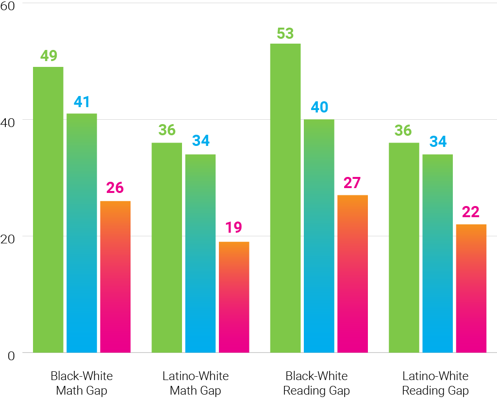 Both the reading and math proficiency gaps between black and white students in CHICAGO is 36 points. MOREBaltimore